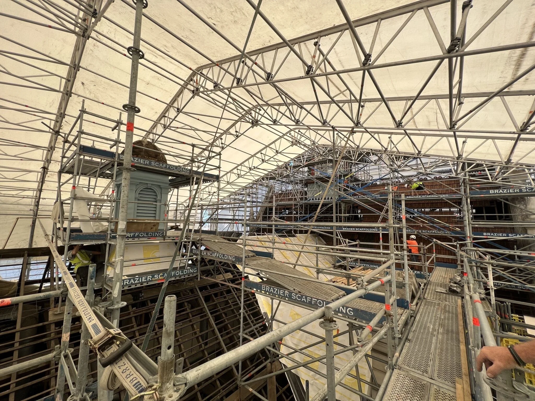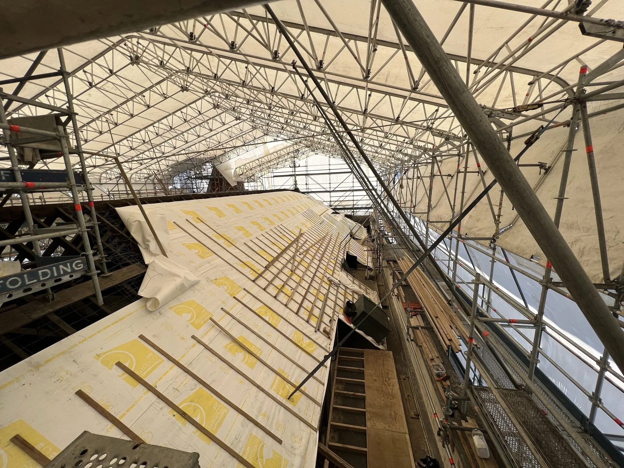 The entire roof structure was encapsulated with a massive Keder Roof XL system. This allowed work to proceed in all weather conditions.